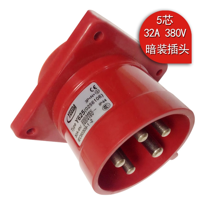Yeeda怡達Y-625(0256106)IP44工業暗裝反針插頭三相五芯32A 380V