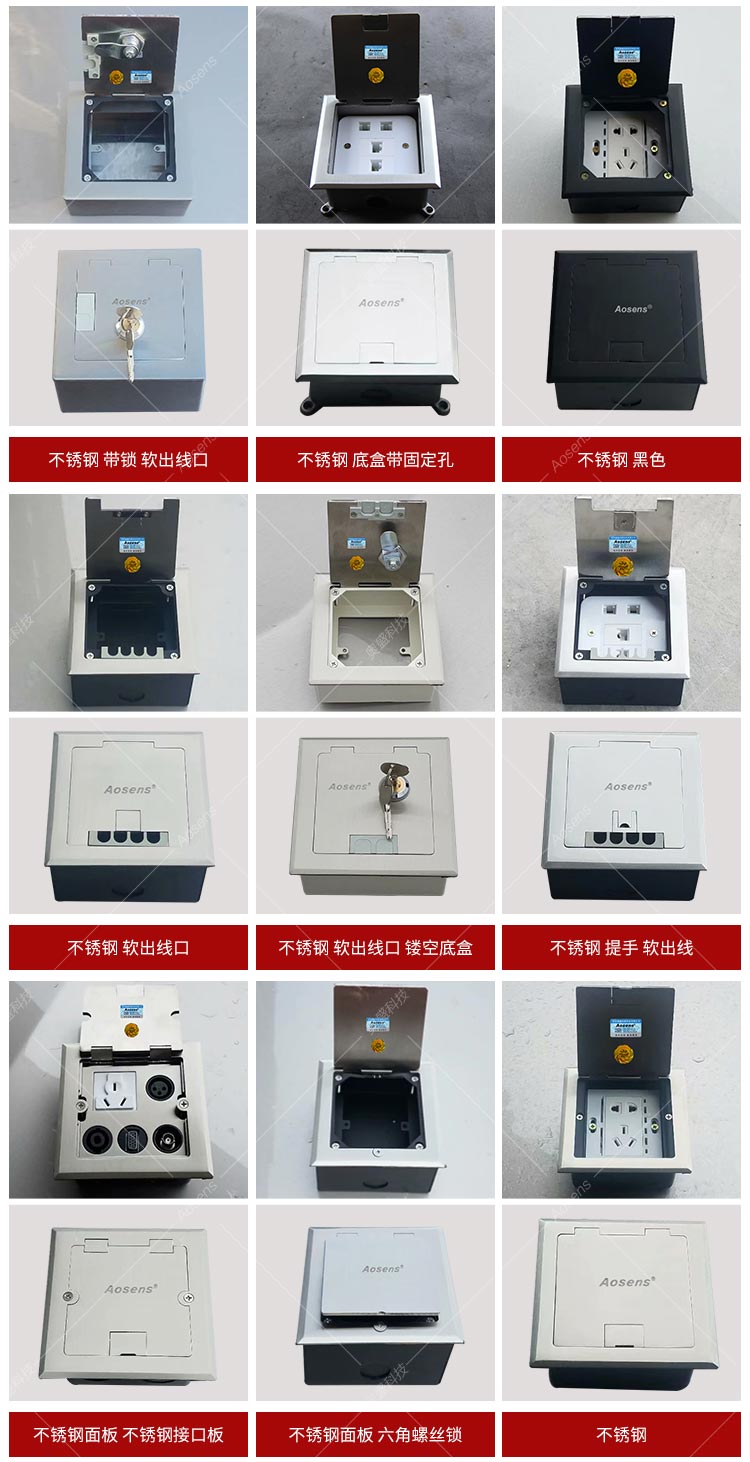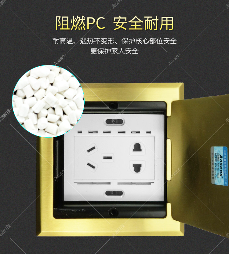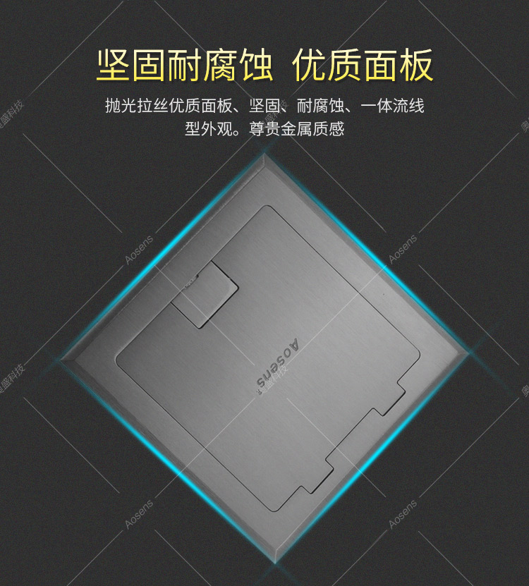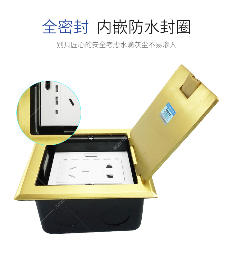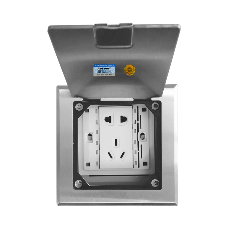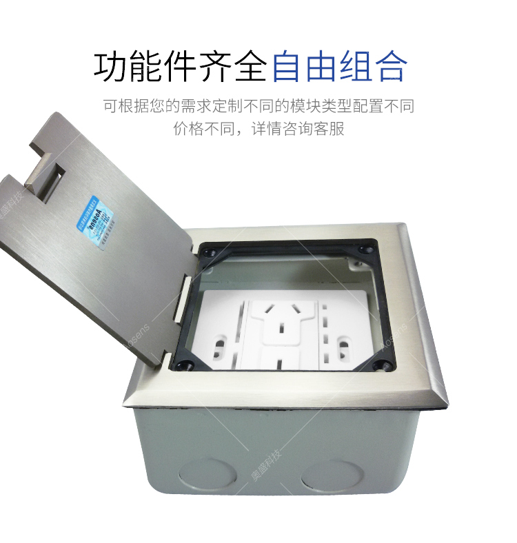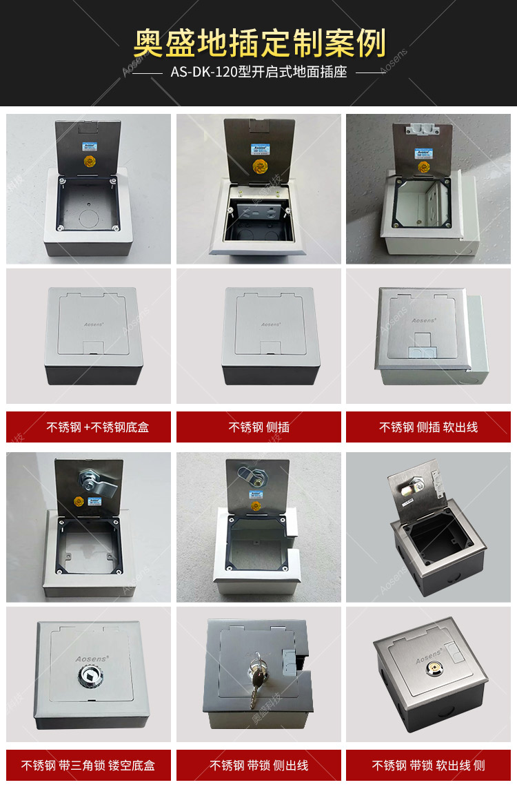 Aosens奧盛 120不銹鋼地面插座 六孔電源地插可裝3個弱電 五孔電源 AS-DK-120