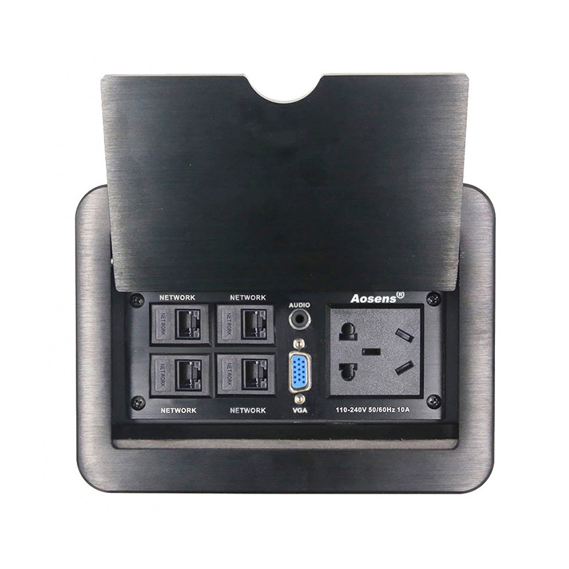 Aosens奧盛 掀蓋式鋁合金多媒體桌面插座會議桌臺插座 五孔電源 網絡 3.5音頻 VGA AS-ZH-410M