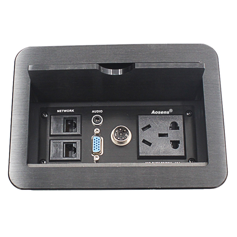 Aosens奧盛 掀蓋式鋁合金多媒體桌面插座會議桌臺插座