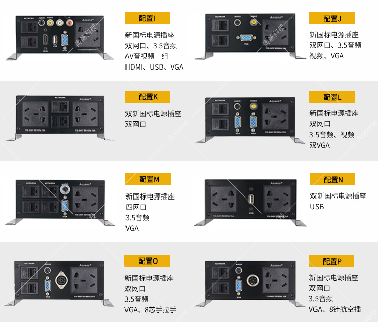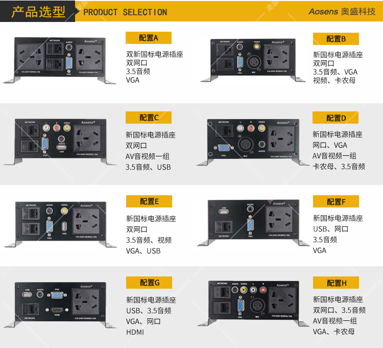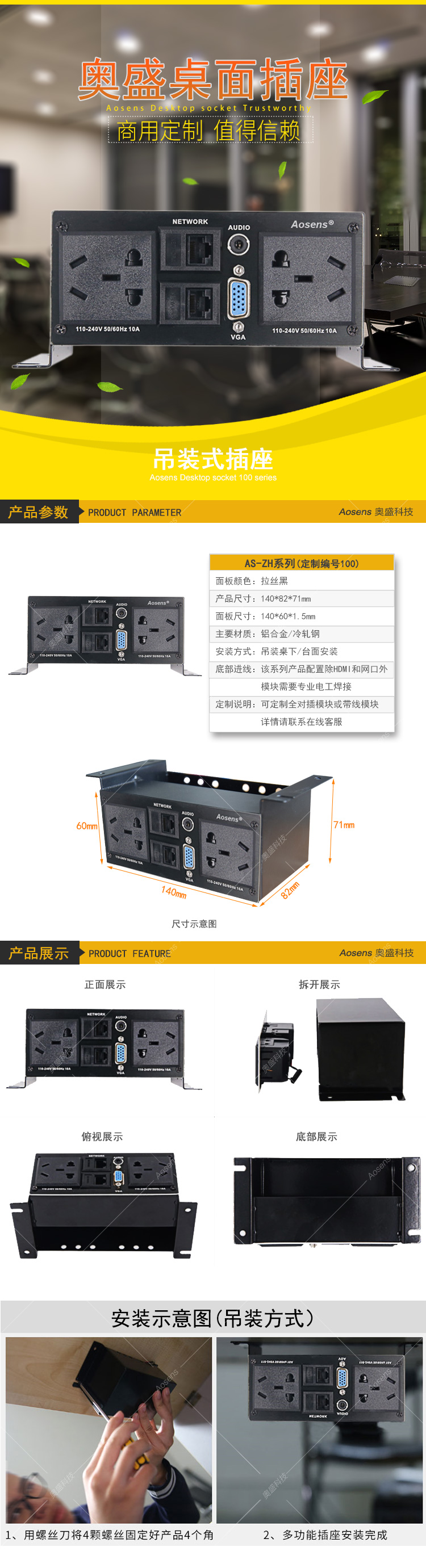 Aosens奧盛 會議臺面吊裝式插座 多媒體夾臺式桌面插座 五孔電源 網絡 VGA 3.5音頻 AS-ZH-100A