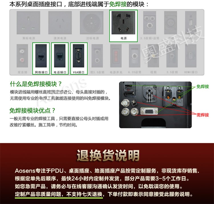 Aosens奧盛 三面電動升降桌面插座 四面氣動多媒體插座 免焊 按單定制 AS-ZF-403