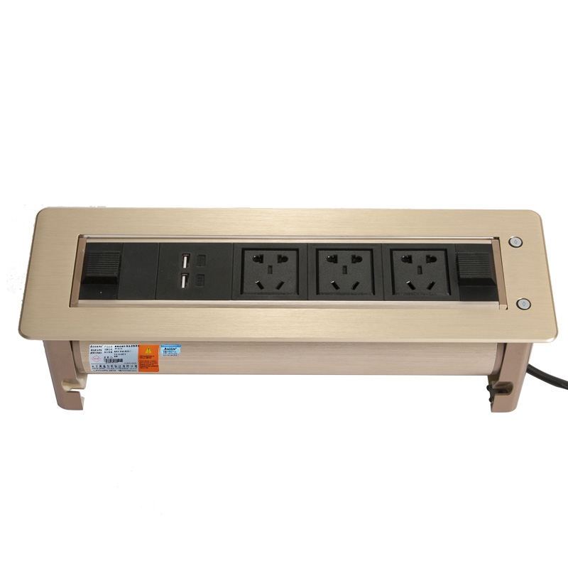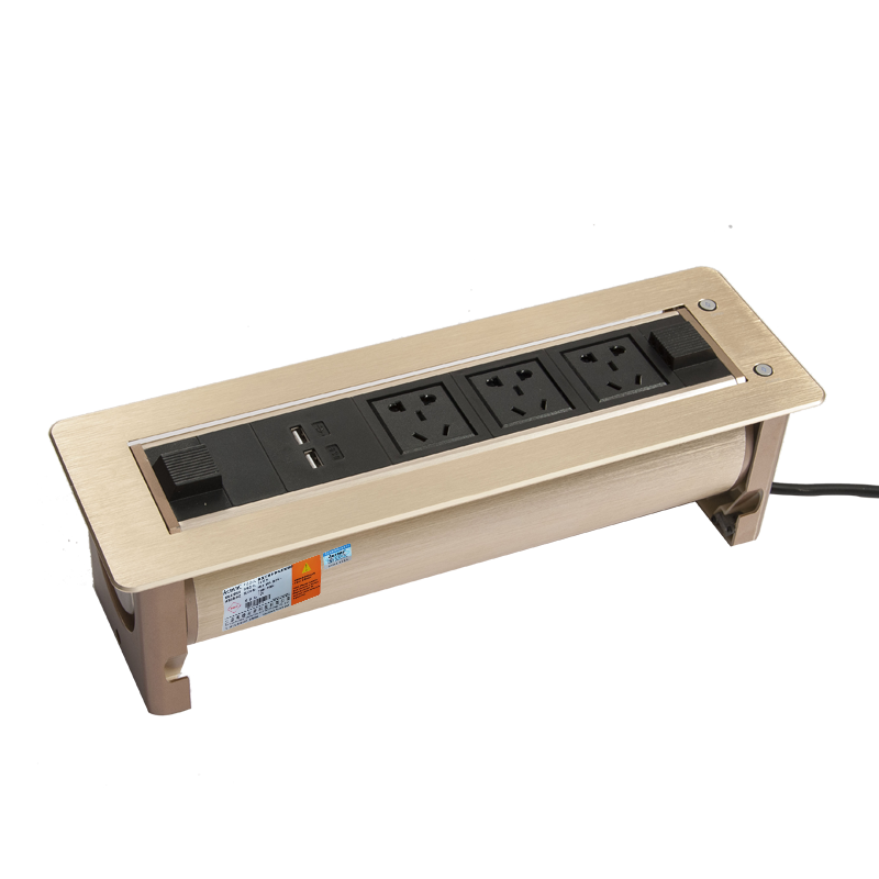 Aosens奧盛 電動翻轉式桌面插座紅外防夾自由組合模塊帶線輸入 B款:五孔電源 雙USB