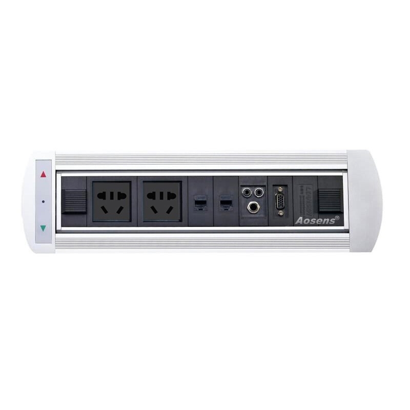 Aosens奧盛 辦公電動翻轉插座180度翻轉會議桌面插座 五孔電源 網絡 話筒 3.5音頻 AS-ZH-001C