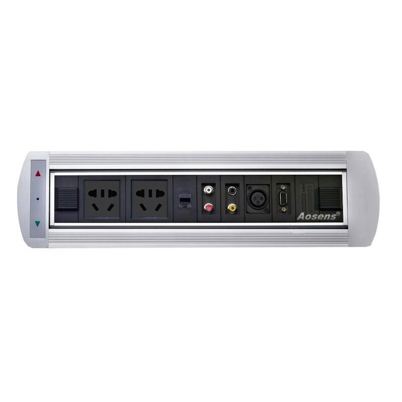 Aosens奧盛 辦公電動翻轉插座180度翻轉會議桌面插座 五孔電源 網絡 3.5音頻 卡儂母 VGA AV音視頻 AS-ZH-001E