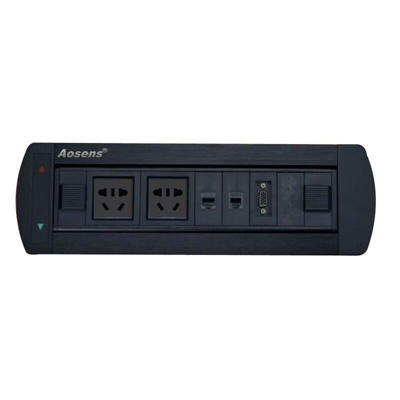 Aosens奧盛 辦公電動翻轉插座180度翻轉會議桌面插座 五孔電源 網絡 VGA AS-ZH-001L
