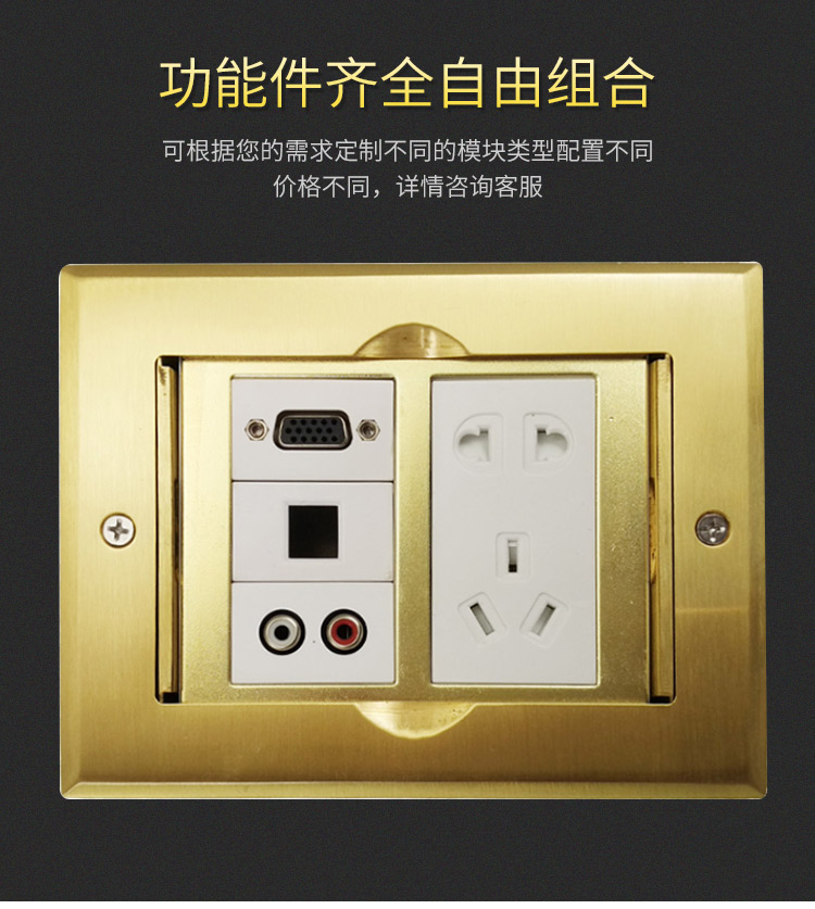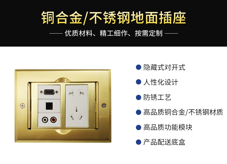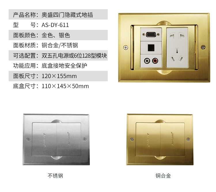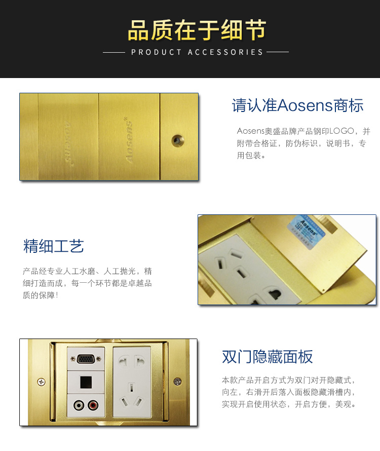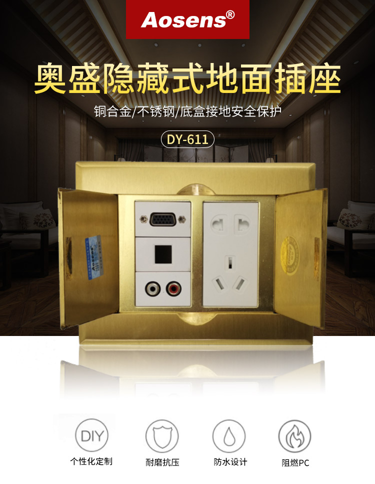 奧盛地插 空架插座 雙門隱藏式銅合金帶底盒 可裝128模塊12位弱電 AS-DY-611