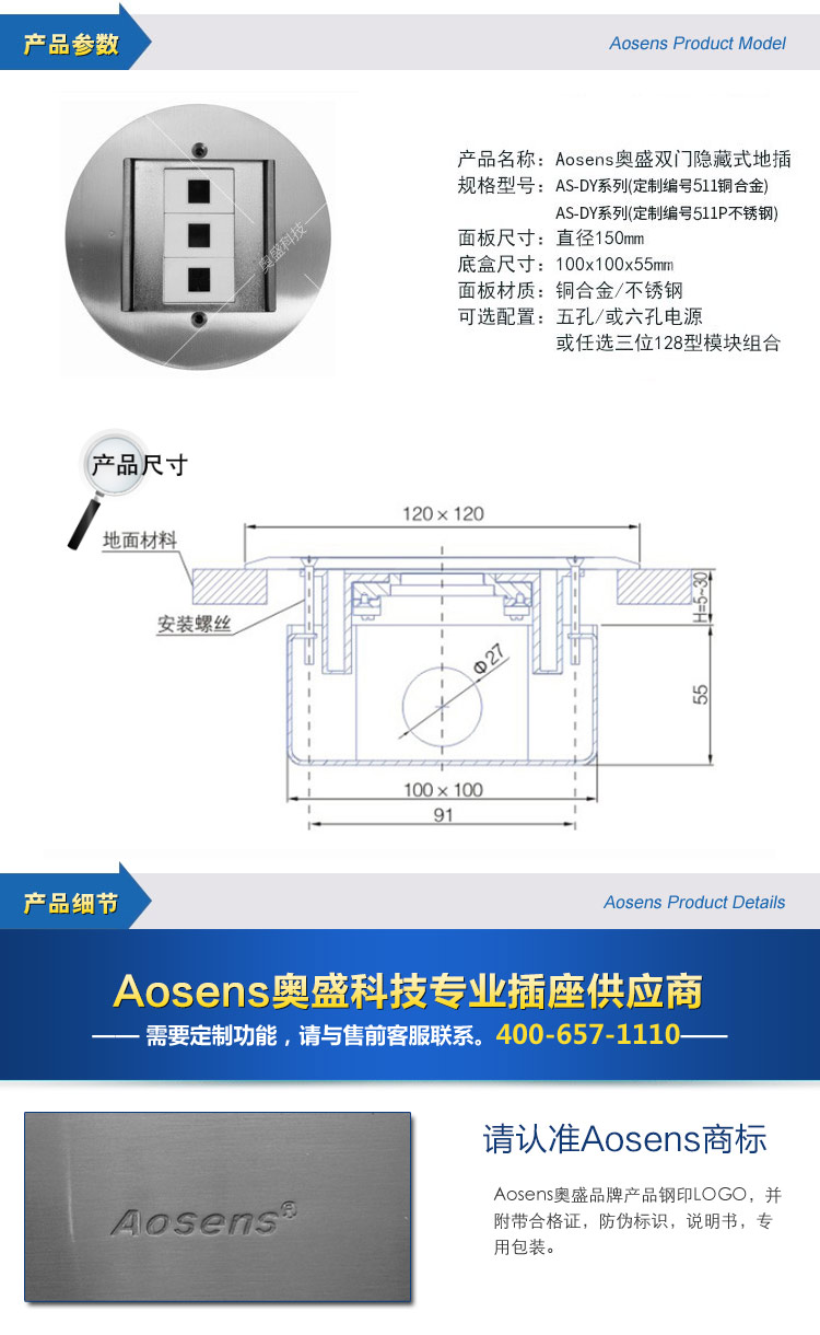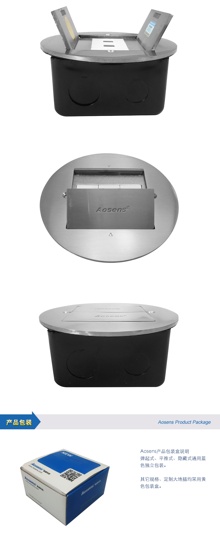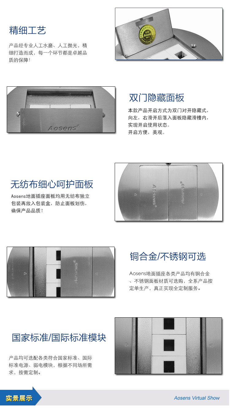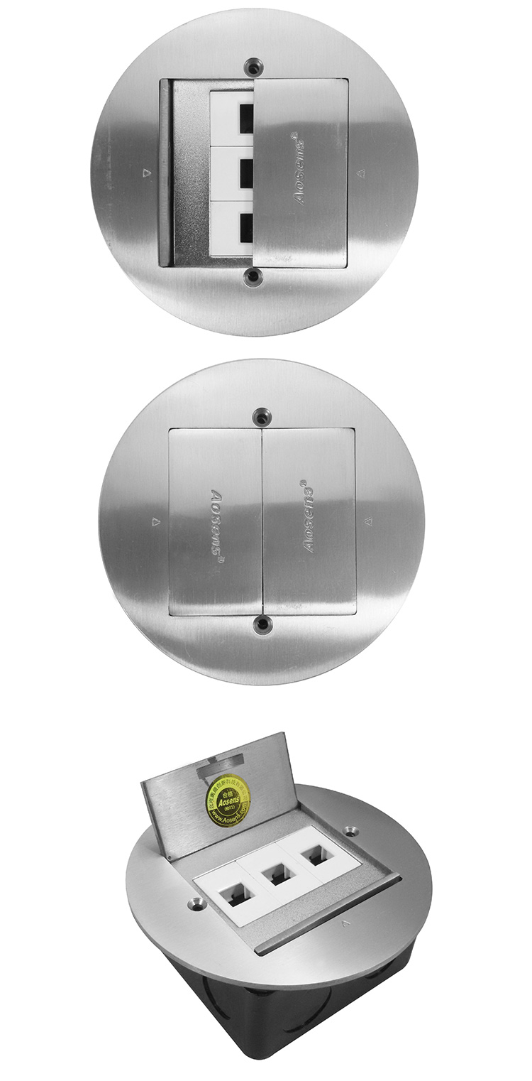 奧盛不銹鋼圓形雙門隱藏式 裝三位弱電網絡模塊可換五孔電源 空架AS-DY-511