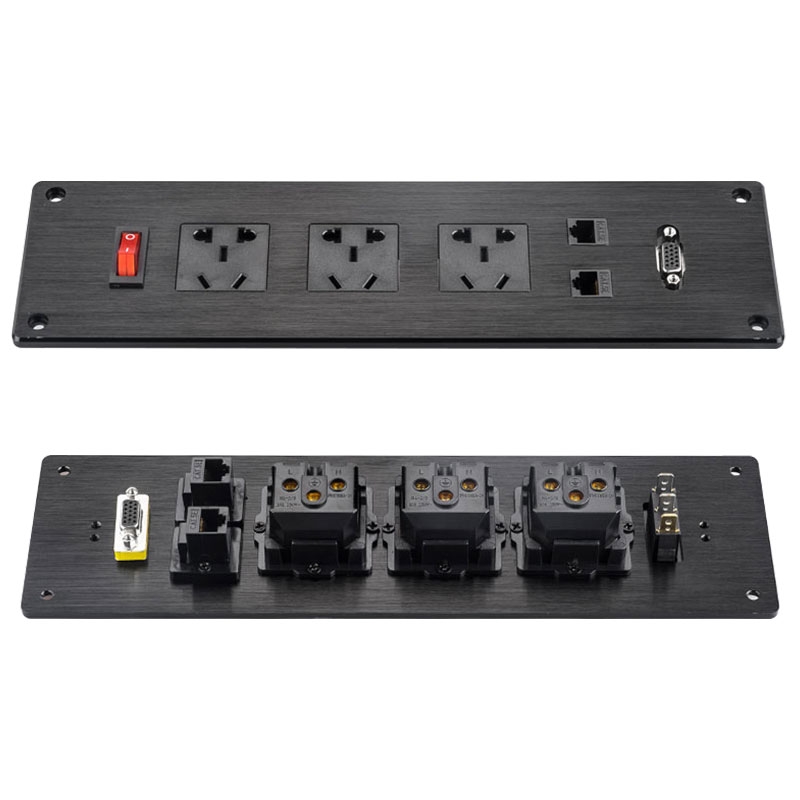 Aosens奧盛 鋁合金多媒體面板臺面插座支持定制 新國標五孔電源 AS-ZH-720F