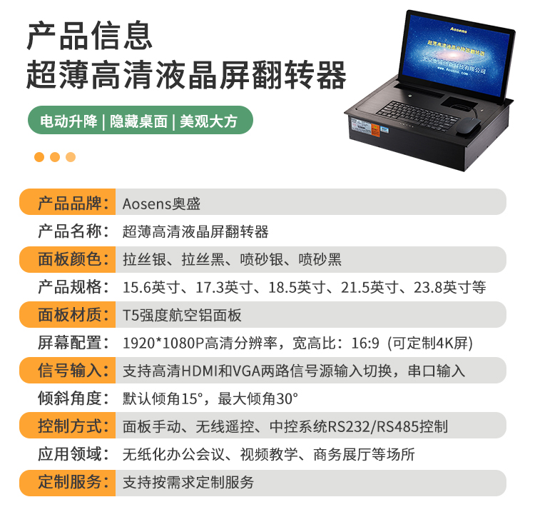 Aosens奧盛 15.6英寸超薄高清液晶屏翻轉(zhuǎn)器HDMI支持VGA輸入串口 AS-OF156
