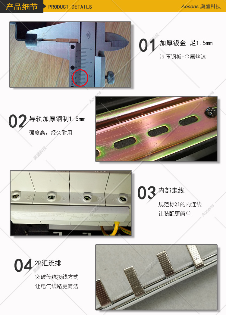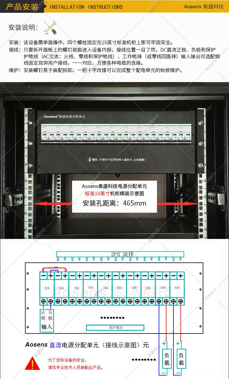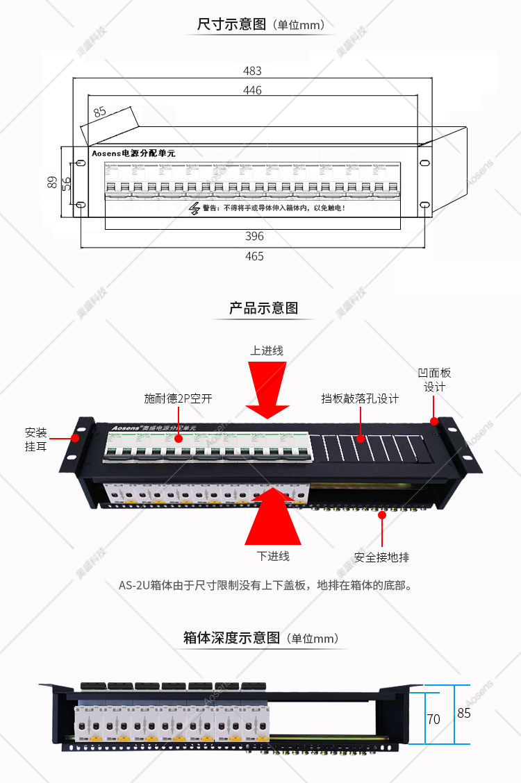 Aosens奧盛 2U平面板施耐德220V直流機柜配電單元PDU配電箱1P2P3P空開斷路器單路架頂電源單路架頂電源