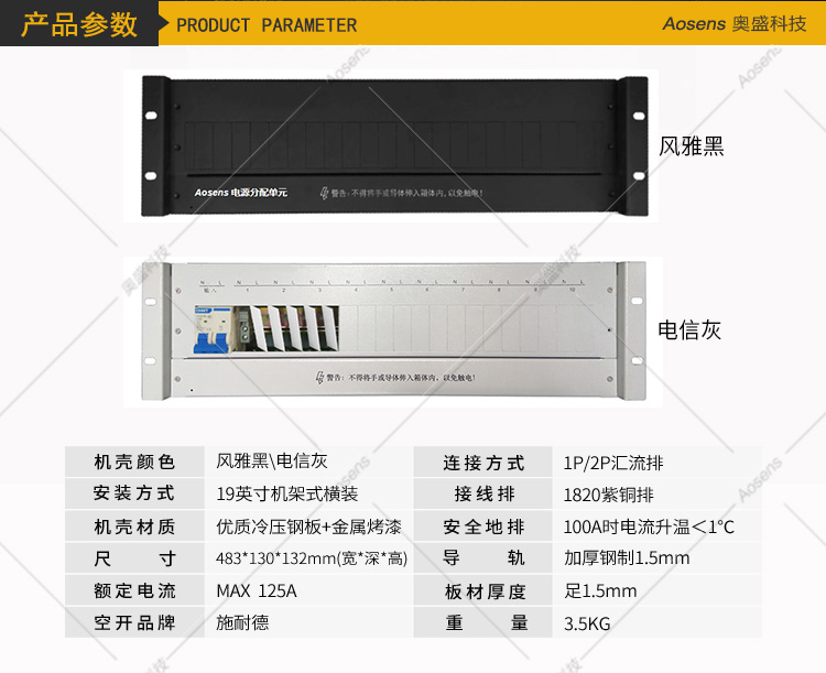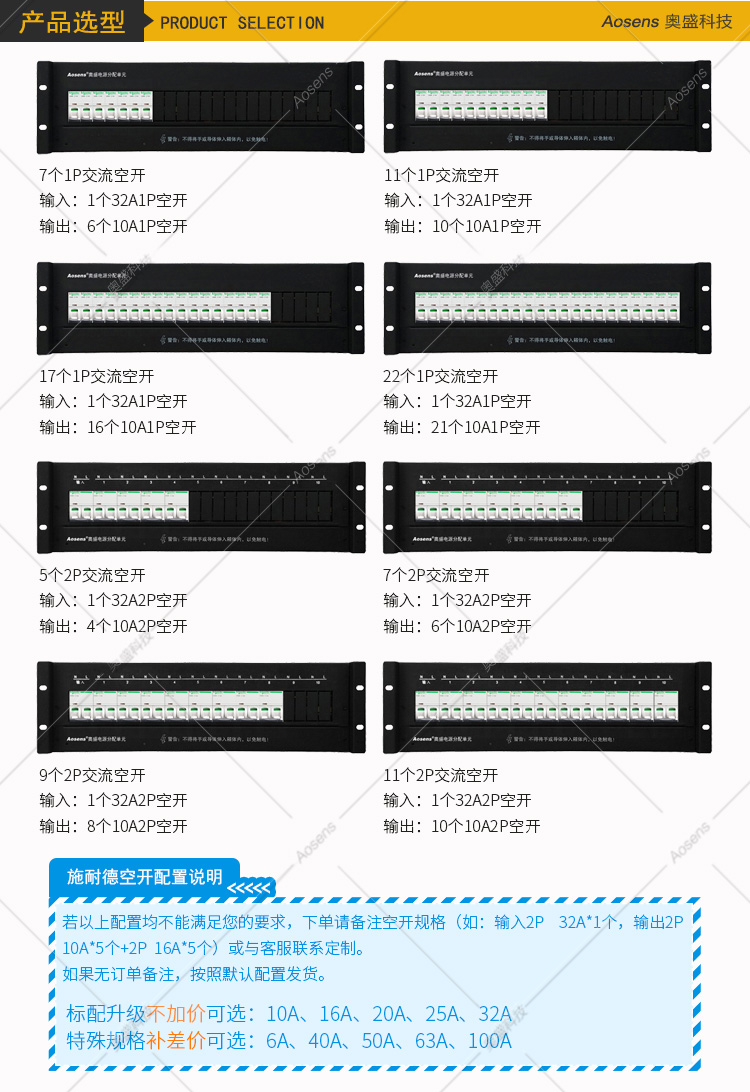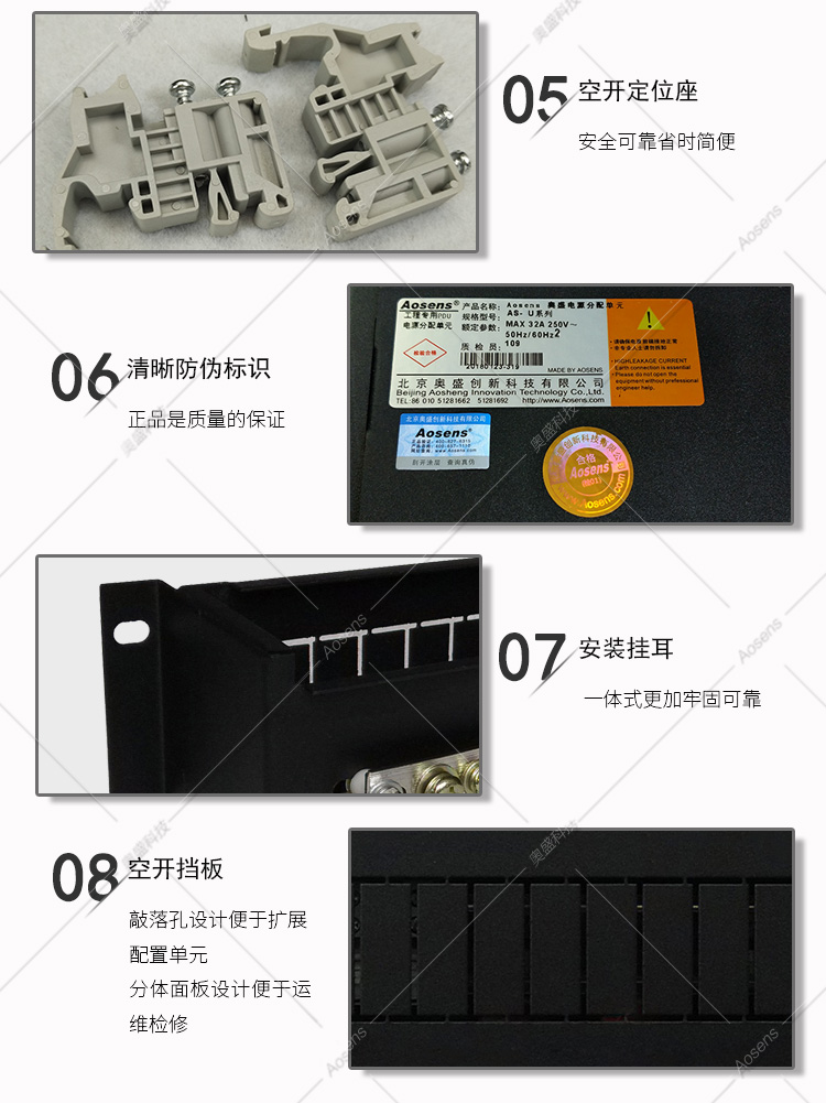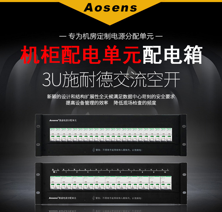 Aosens奧盛 3U強電機柜配電單元PDU19英寸配電箱 架頂電