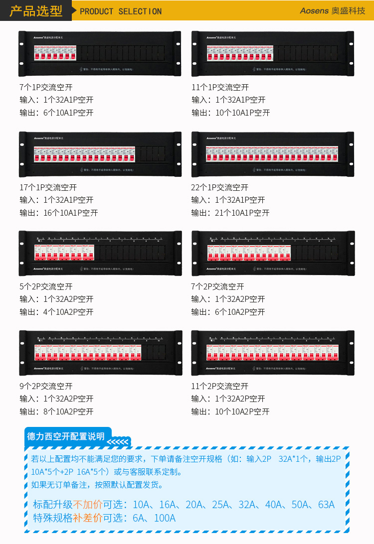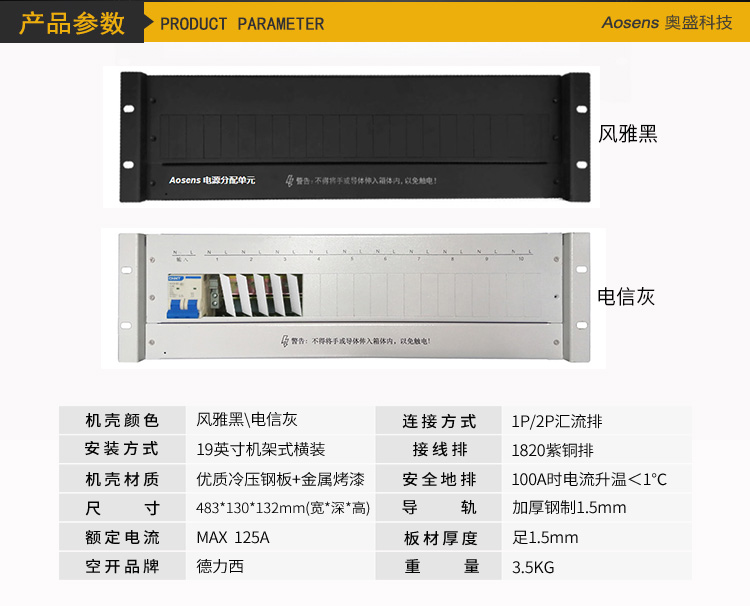 Aosens奧盛 3U強電機柜配電單元PDU19英寸配電箱 架頂電