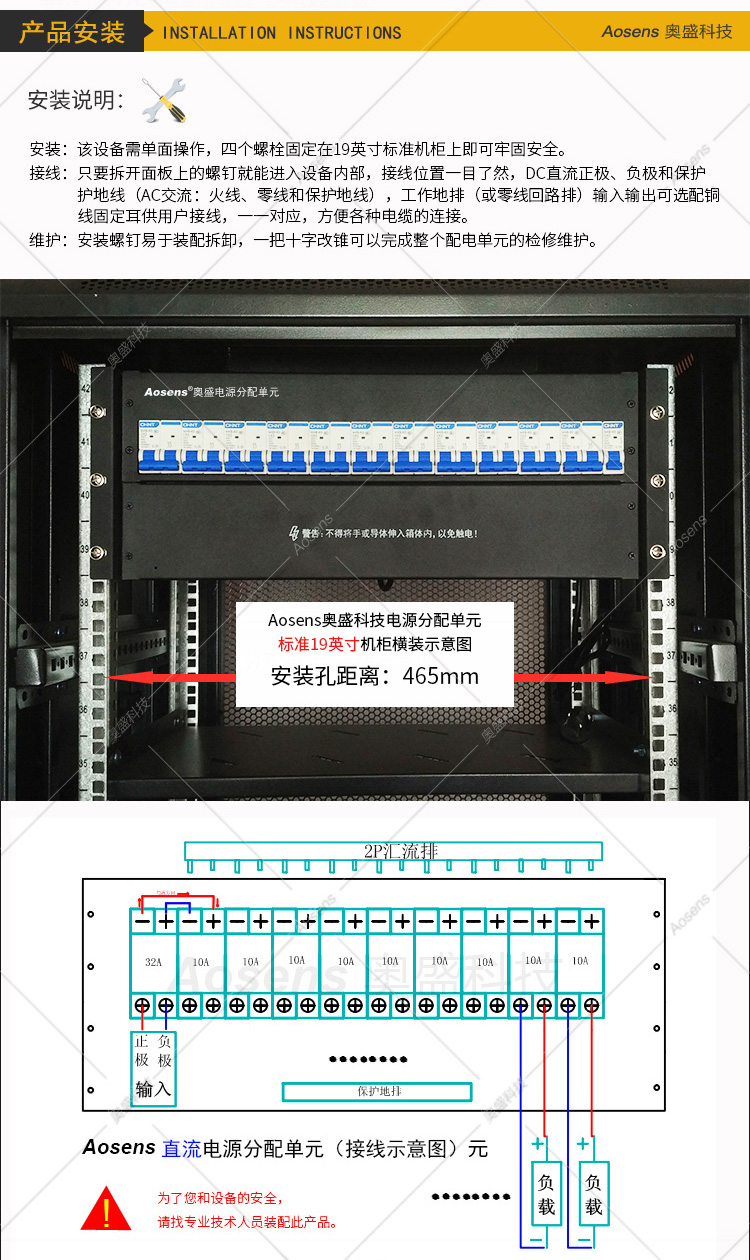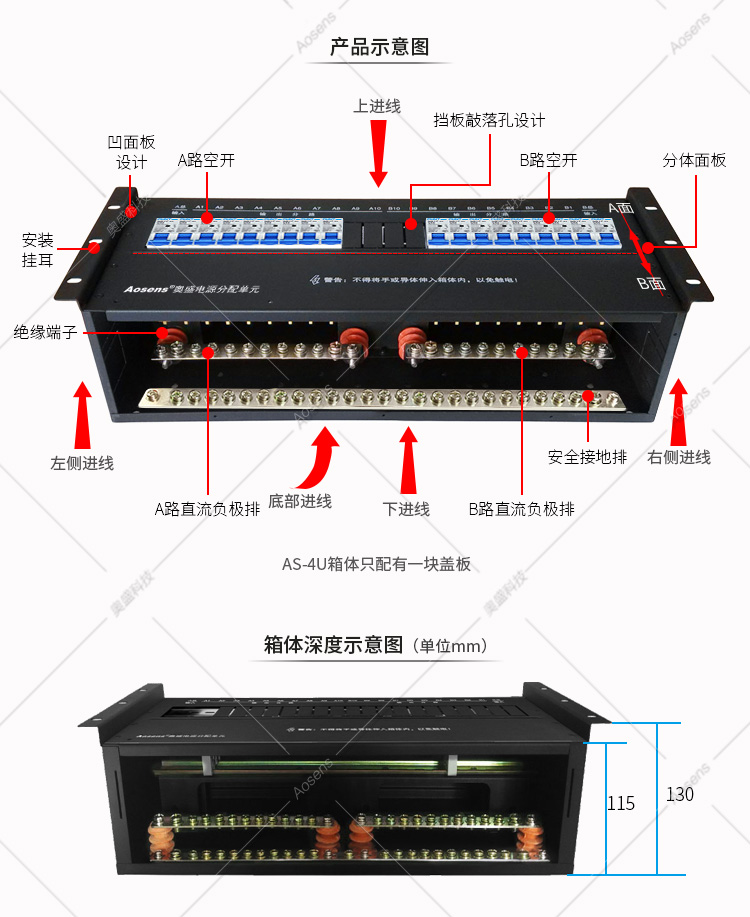 Aosens奧盛 4U正泰直流空開斷路器雙路架頂電源箱 機柜配電單元PDU配電箱