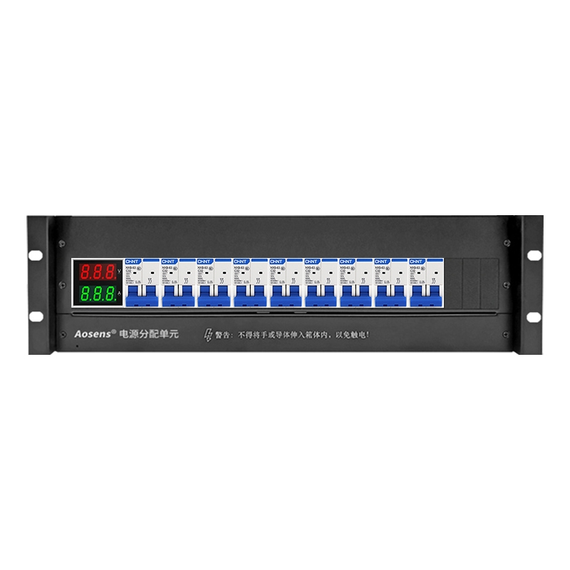 Aosens奧盛機柜配電單元 3U室內配電箱機架式交流2P空開 電流電壓表單路