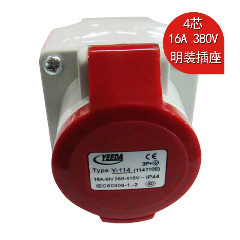YEEDA怡達Y-114(1141106) 明裝工業插座 IP44三相四芯16A 380V防水插座