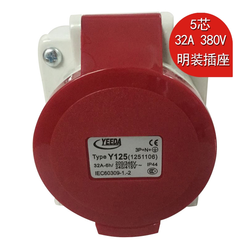 YEEDA怡達Y-125(1251106)明裝工業插座 IP44三相五芯32A 380V防水插座