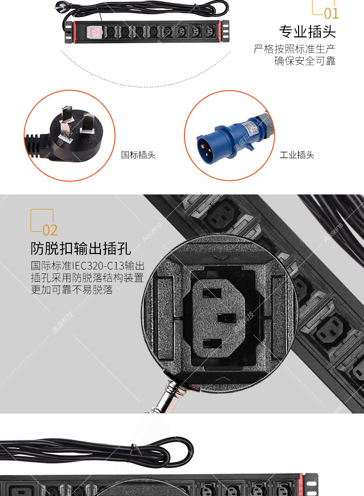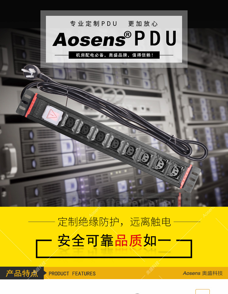 Aosens奧盛 10A8位帶SPD防雷浪涌保護PDU電源插座 16A機柜