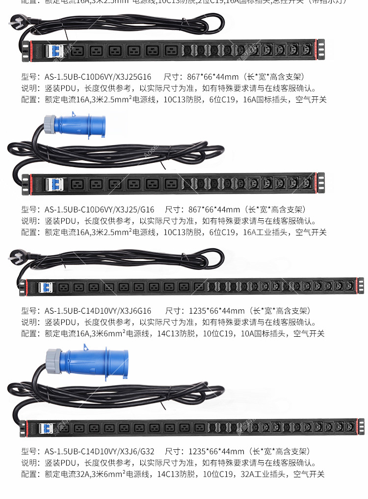 Aosens奧盛 16A16位帶2P正泰空開PDU電源插座AS-1U-H16K