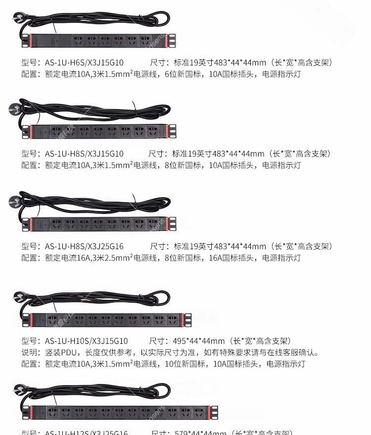 Aosens奧盛 16A24位帶開關國標五孔PDU電源插座 AS-1.5UB-H24S