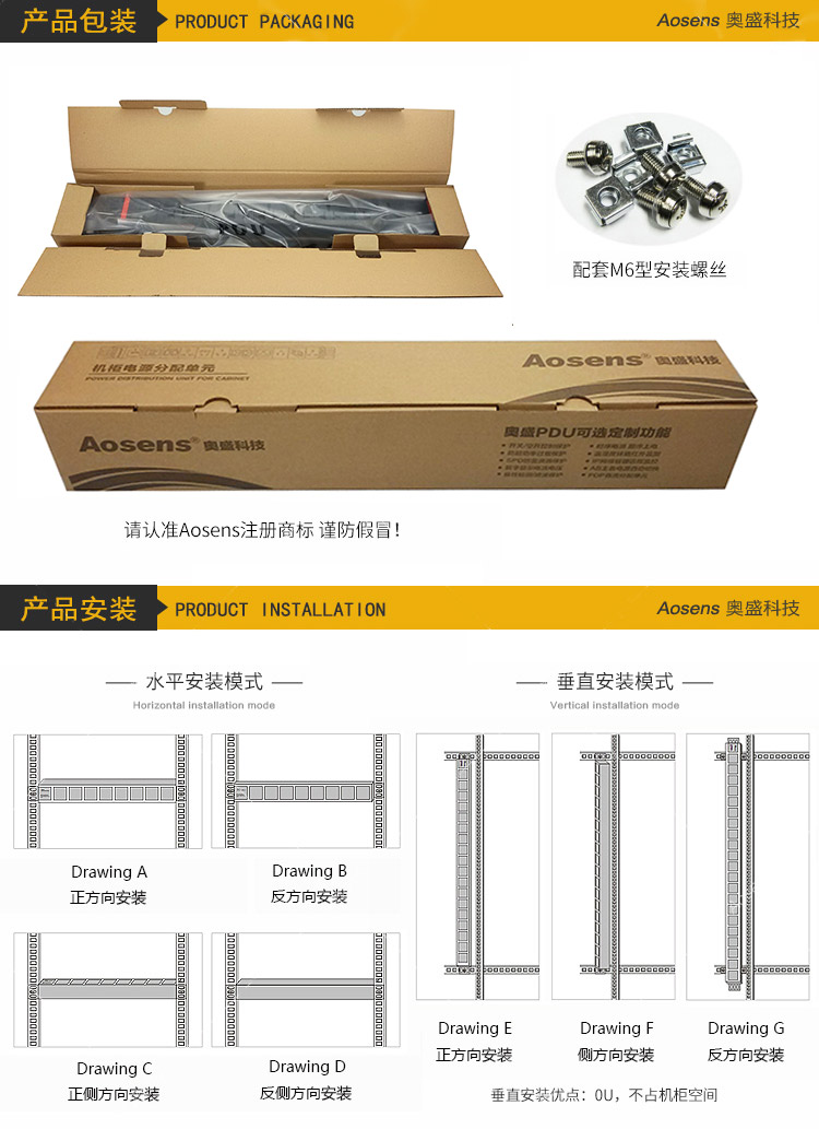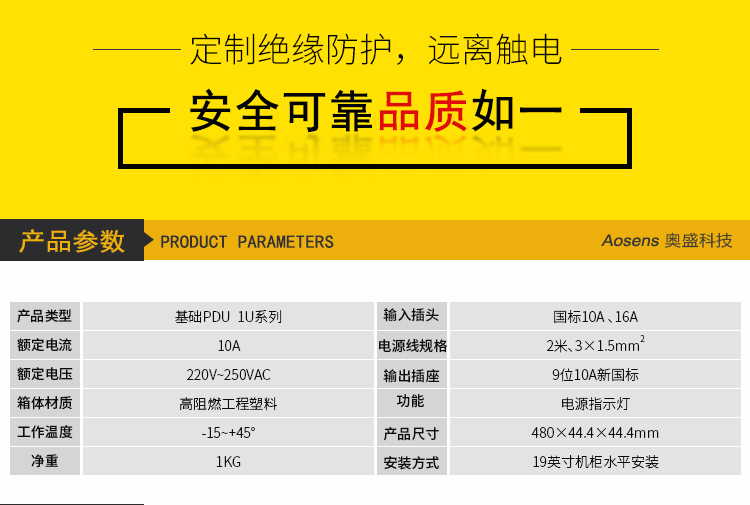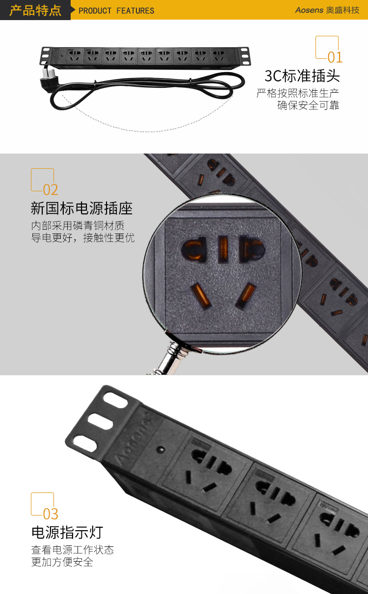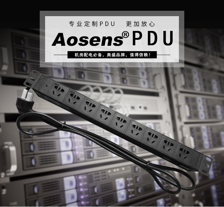 Aosens奧盛10A九聯PDU機柜電源插座帶指示燈19英寸工程款