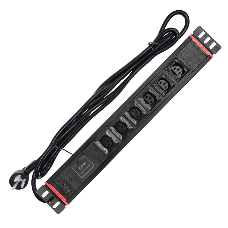 Aosens奧盛 10A6位C13防脫PDU機柜電源插座 SPD防雷 電源指示燈AS-1.5UB-C6VKS