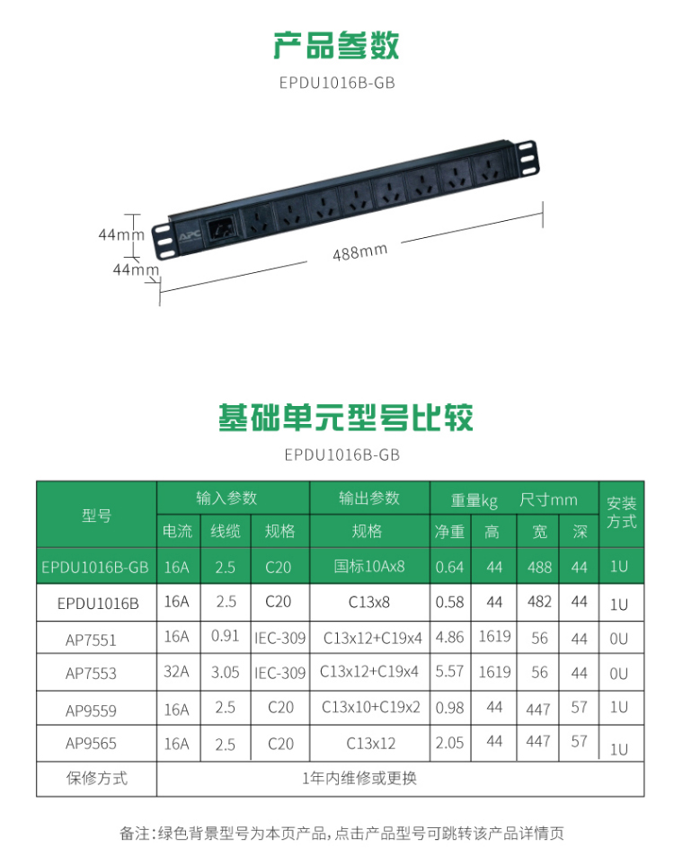 施耐德(APC)EPDU1016B-GB PDU插座電源分配單元替代原AP6201CH 16A