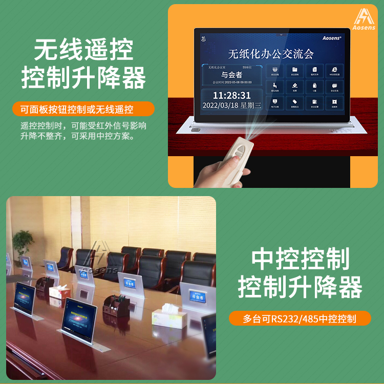 Aosens奧盛 17英寸液晶屏升降器自由更換會議桌電腦顯