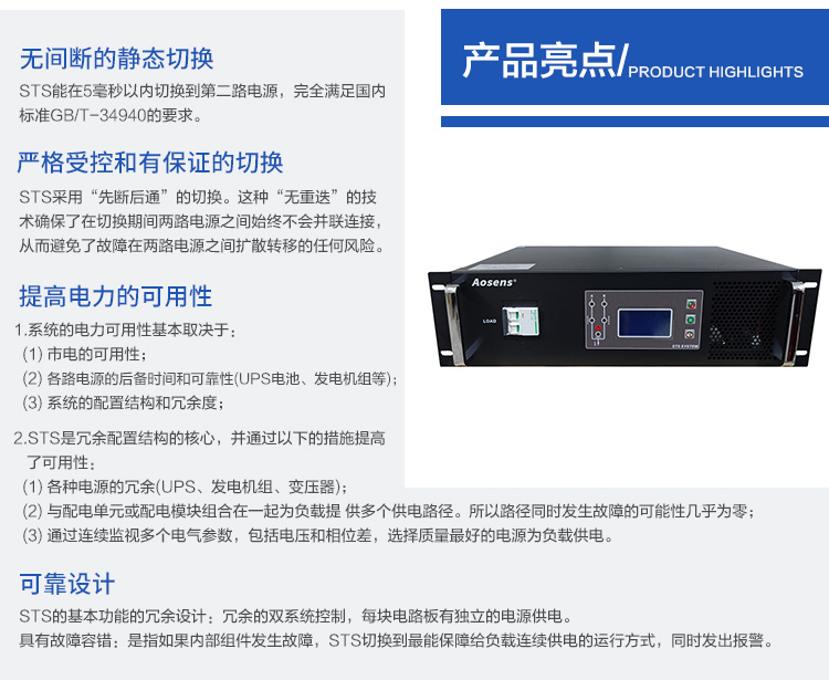 奧盛3U 2P單相STS靜態切換開關電源 價格為預付定金