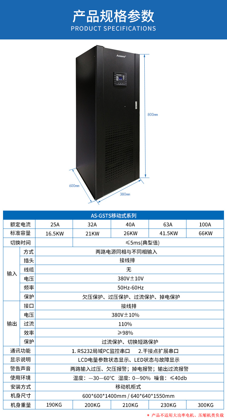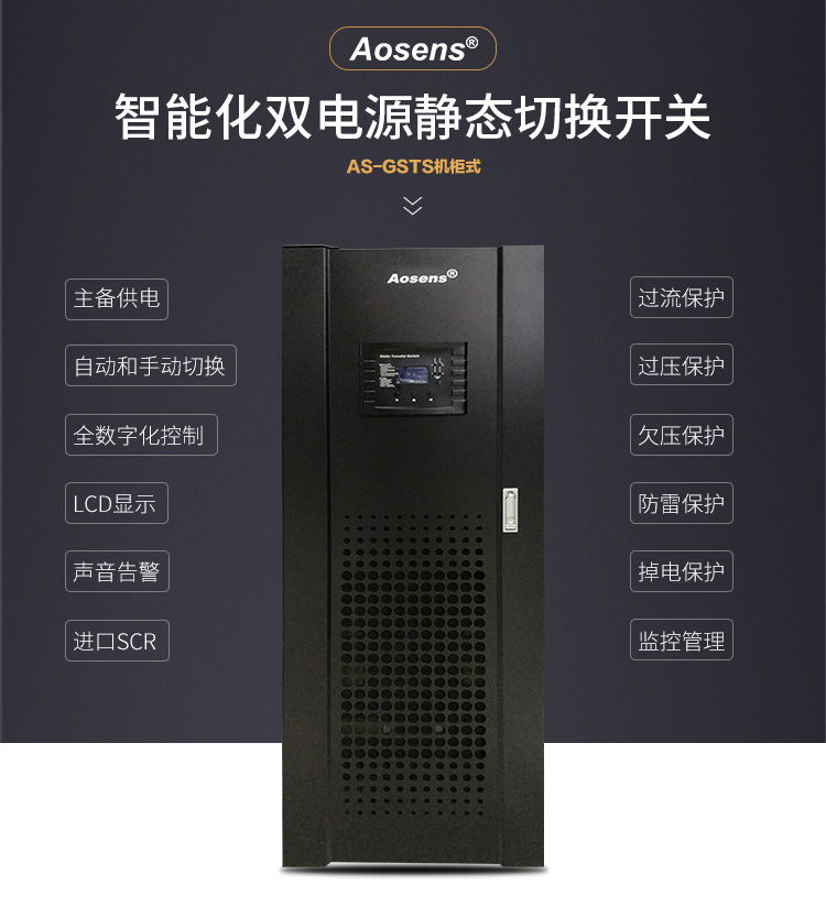 定制10A奧盛(Aosens)STS雙電源切換器靜態(tài)切換開關RS485智