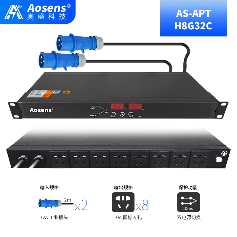 奧盛(Aosens) 10A智能ATS雙電源切換器SNMP靜態切換開關8