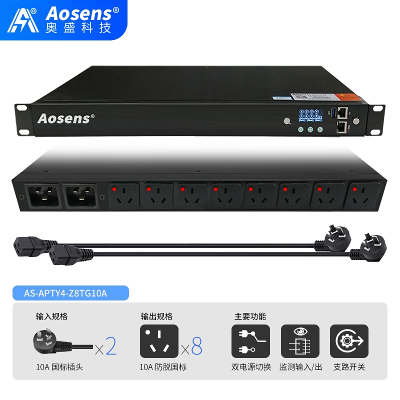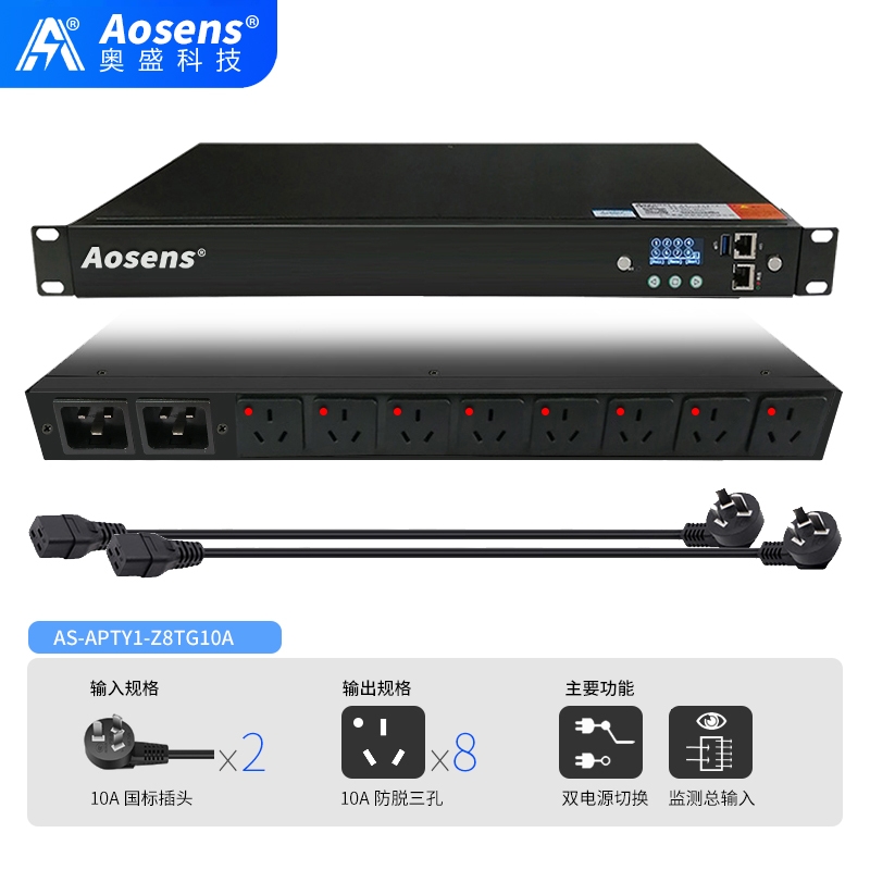 奧盛10A國標雙路ATS切換器防脫三孔市電UPS自動切換PDU不斷電 AS-APTY