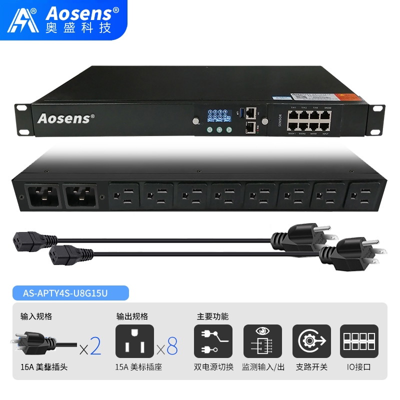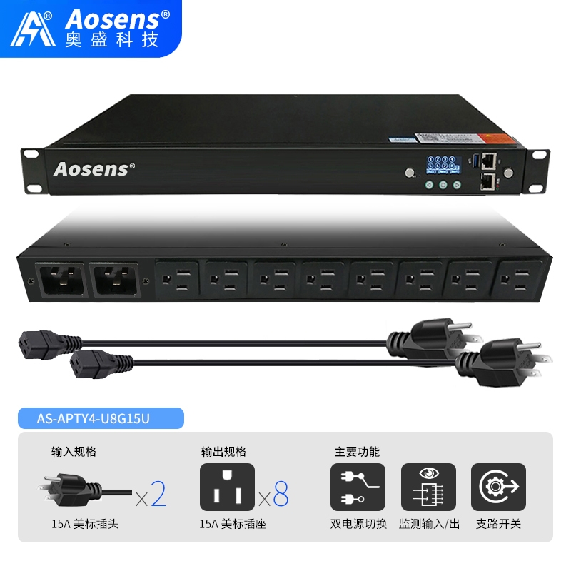 奧盛15A美標雙路ATS切換器8位美標市電UPS自動切換PDU不斷電 AS-APTY