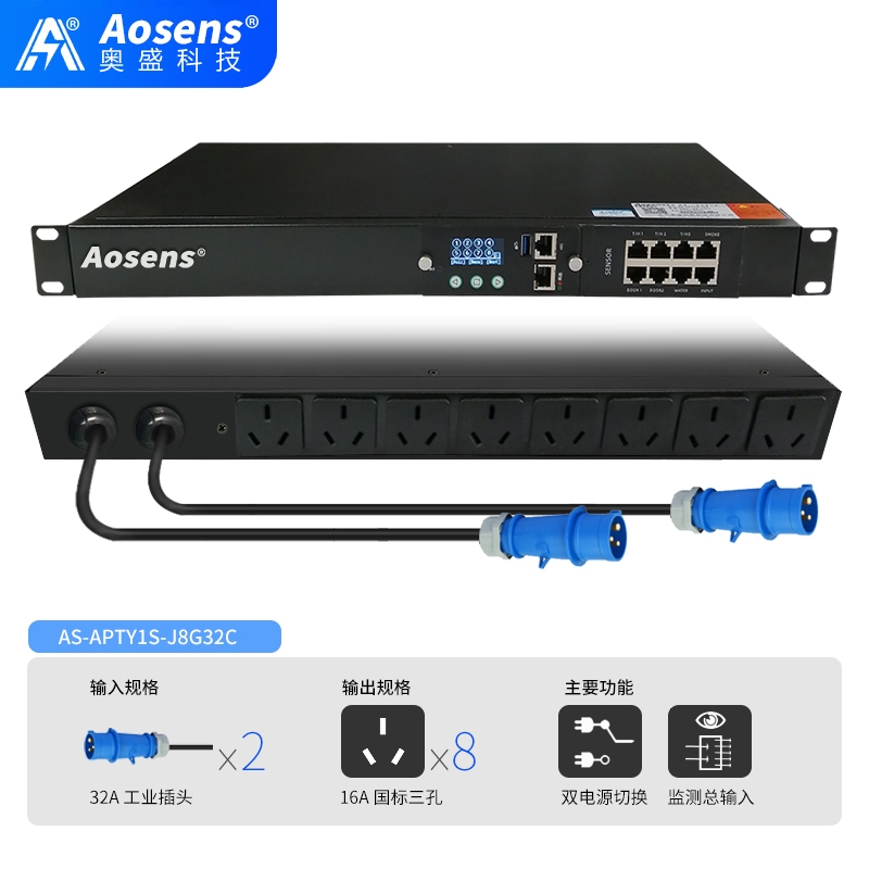 奧盛 32A工業雙路ATS切換器16A國標市電UPS自動切換PDU不斷電 AS-APTY