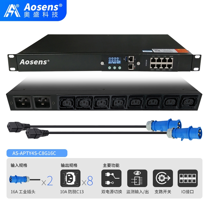 奧盛(Aosens) 16A智能ATS雙電源切換器SNMP靜態(tài)切換開(kāi)關(guān)遠(yuǎn)