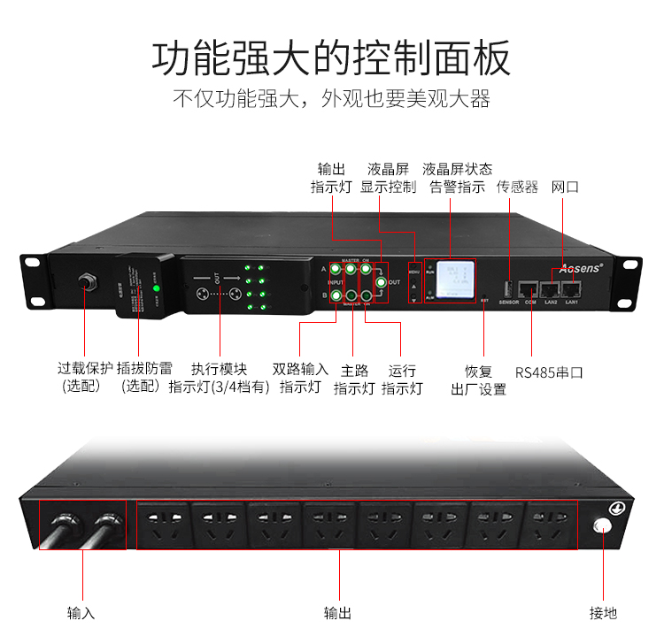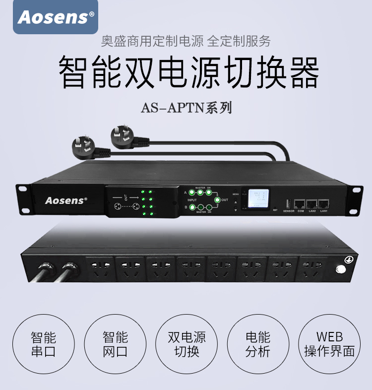 奧盛(Aosens) 10A智能ATS雙電源切換器SNMP靜態(tài)切換開關(guān)8