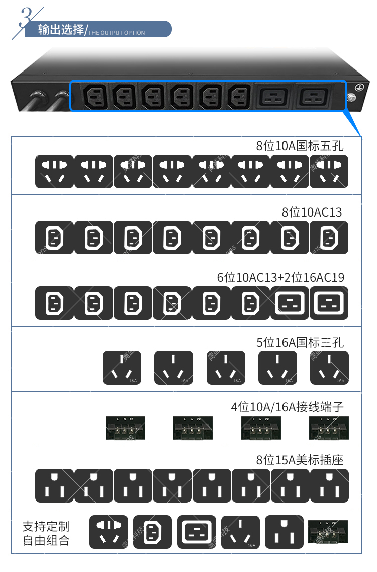 奧盛16A工業(yè)雙路ATS切換器8位五孔市電UPS自動(dòng)切換PDU不
