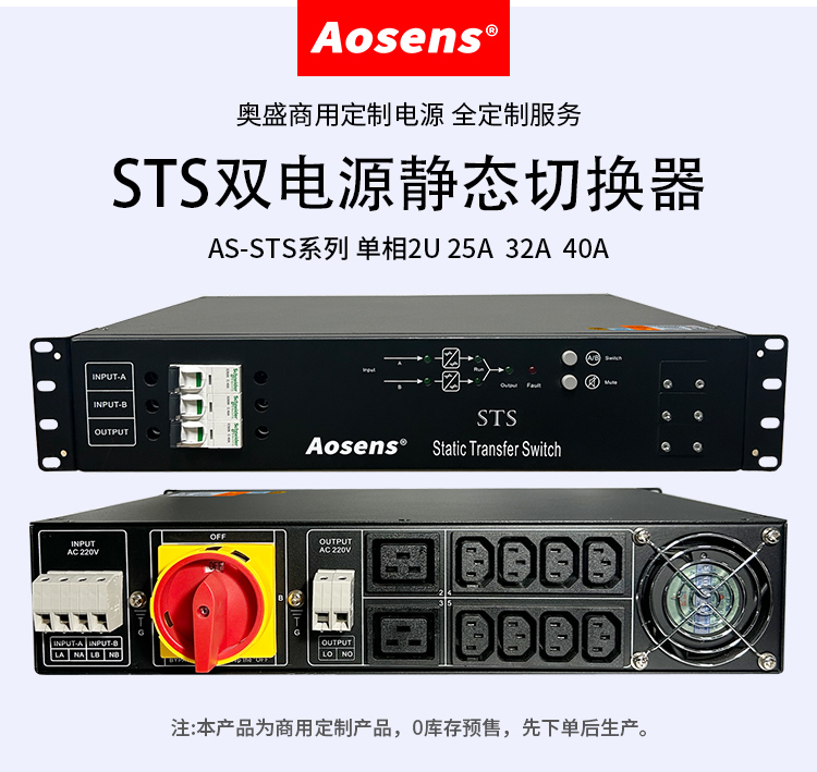 Aosens奧盛 STS靜態切換開關雙路220V輸入25A-160A雙路電源冗余切換器 AS-STS-1132/1P