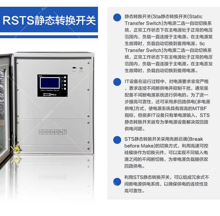 奧盛 壁掛式32A單相RSTS靜態轉換開關雙電源切換開關63A 單相100A