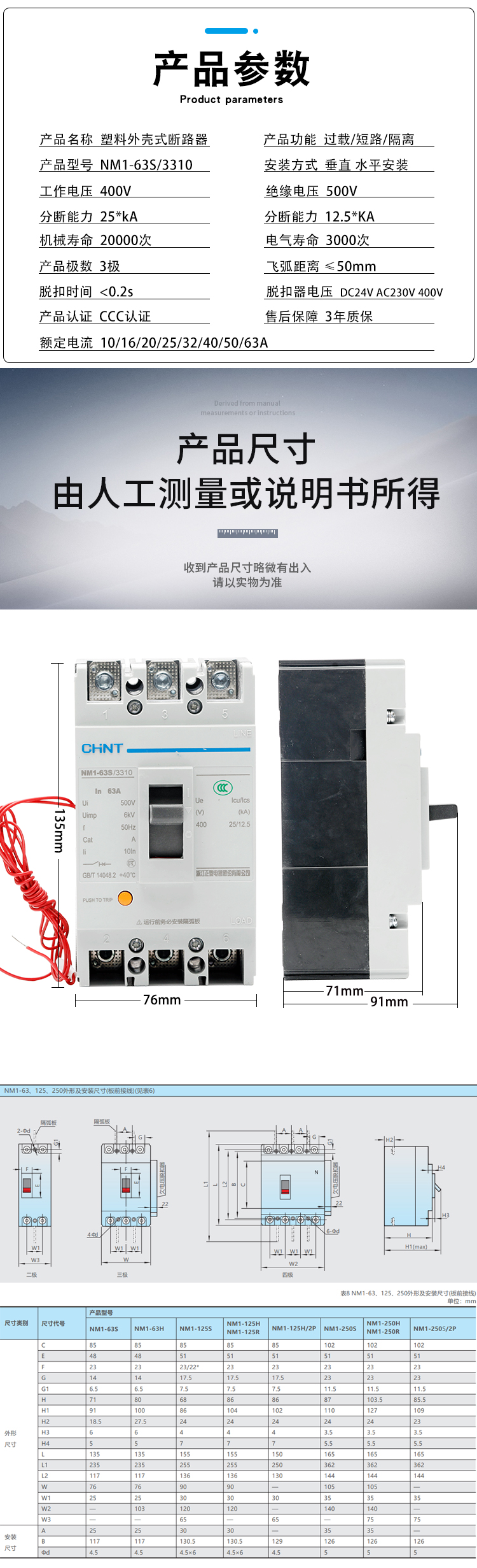 正泰塑殼斷路器NM1-250S/3300 125A-250A 三相3P