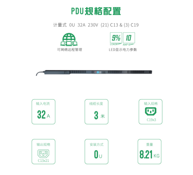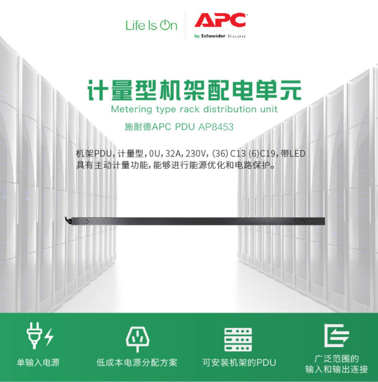 施耐德(APC)AP8453 PDU計量型 0U 32A 230V 21個C13 +3個 C19