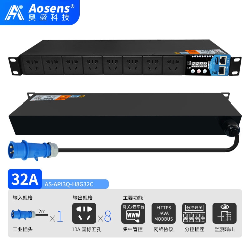 奧盛(Aosens)API3網(wǎng)絡(luò)遠(yuǎn)程監(jiān)控C13防脫P(yáng)DU電源插座智能時(shí)