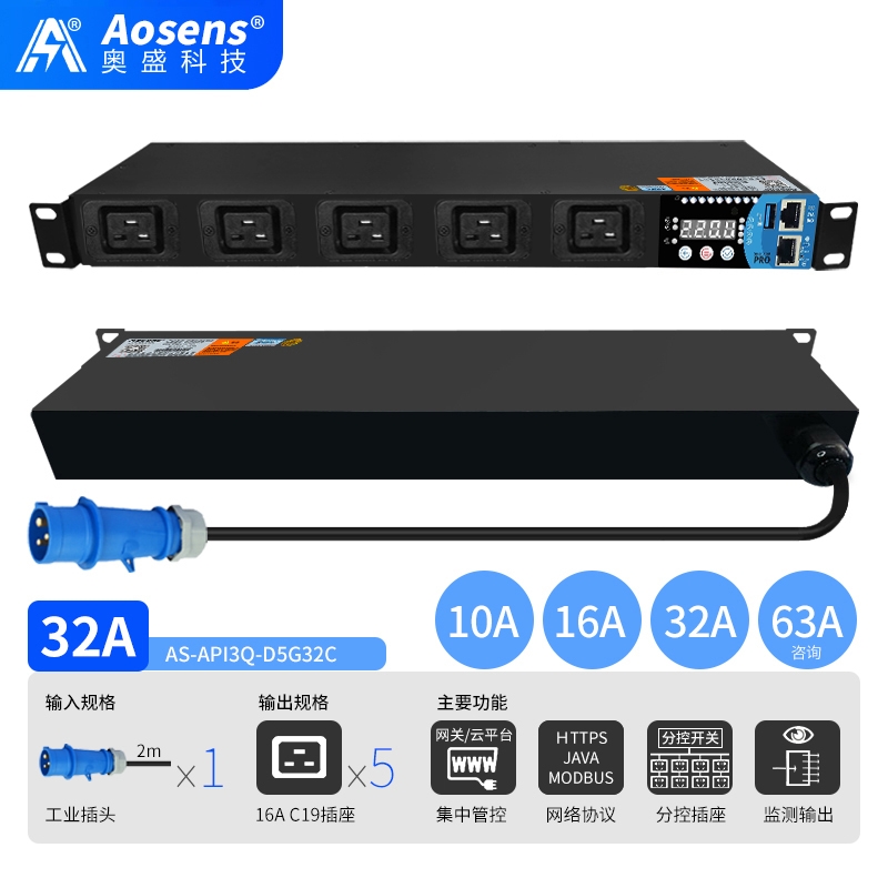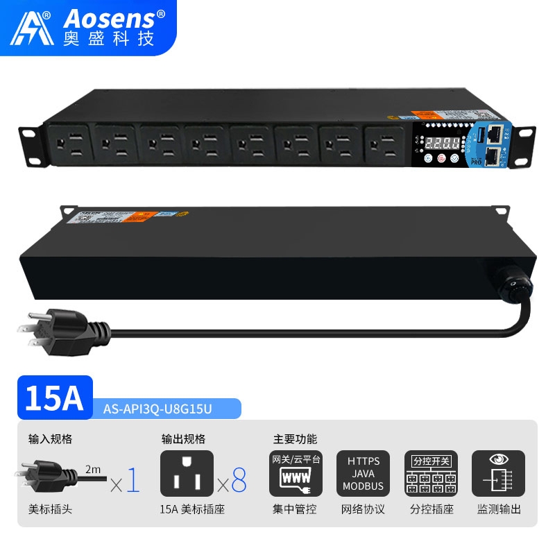 奧盛(Aosens)API3網(wǎng)絡(luò)遠(yuǎn)程監(jiān)控C13防脫P(yáng)DU電源插座智能時(shí)