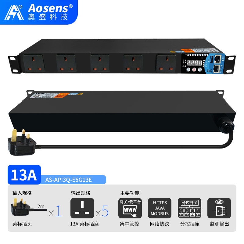 奧盛(Aosens)API3A網(wǎng)絡(luò)遠(yuǎn)程監(jiān)控五孔PDU電源插座智能時(shí)序