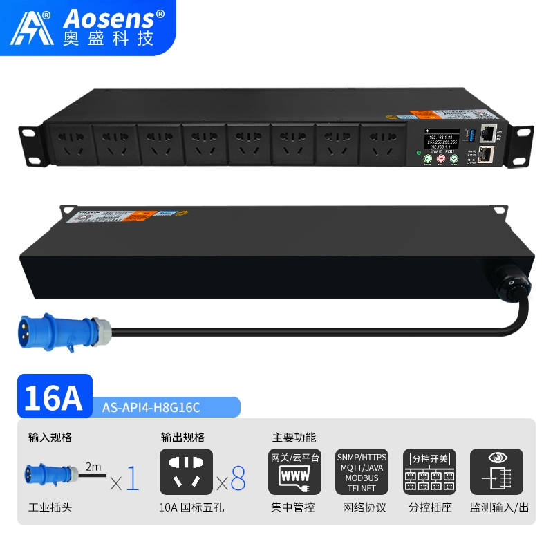 奧盛(Aosens)API3網絡遠程監控C13防脫PDU電源插座智能時