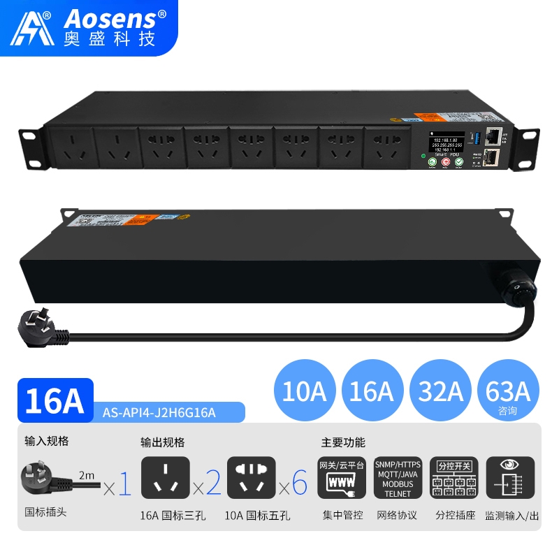 奧盛(Aosens)API3網(wǎng)絡(luò)遠(yuǎn)程監(jiān)控C13防脫P(yáng)DU電源插座智能時(shí)