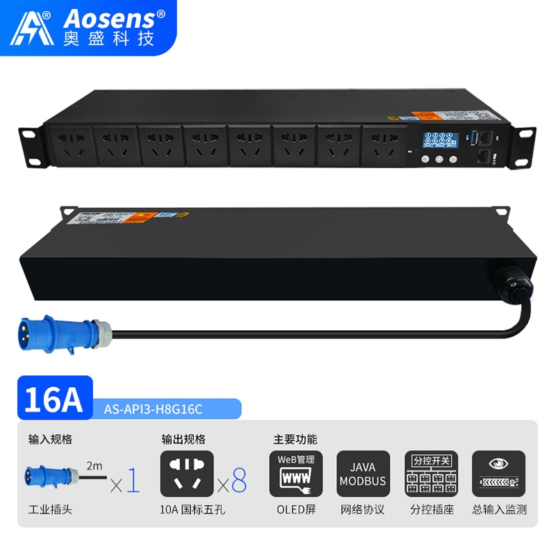奧盛(Aosens)API3網絡遠程監控C13防脫PDU電源插座智能時