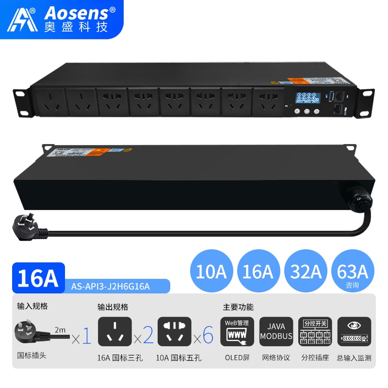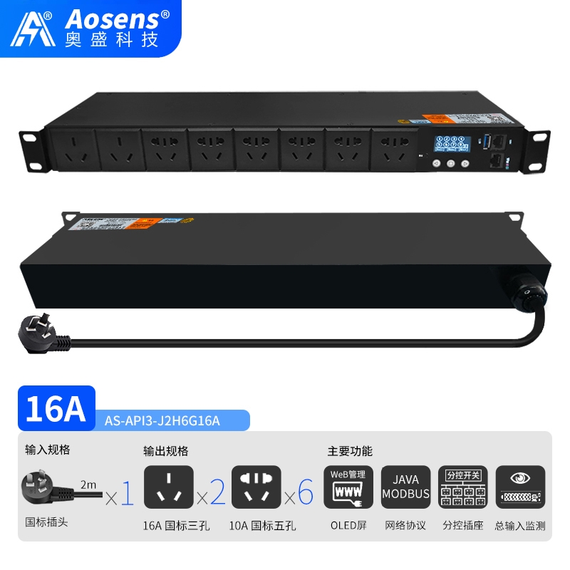 奧盛(Aosens)API3網(wǎng)絡(luò)遠(yuǎn)程監(jiān)控C13防脫P(yáng)DU電源插座智能時