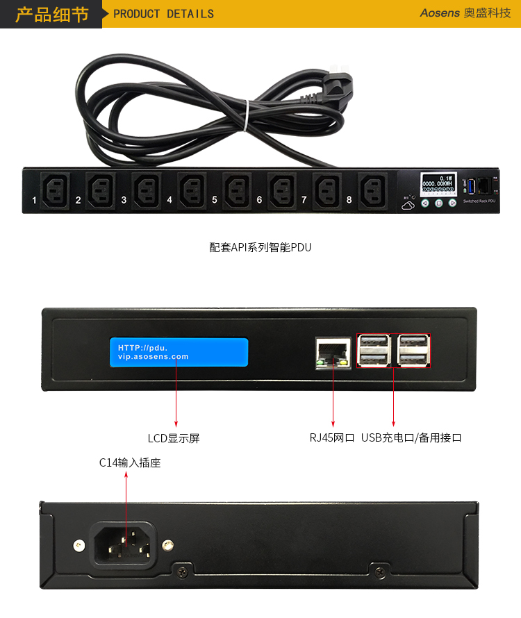 奧盛(Aosens)API3網(wǎng)絡(luò)遠(yuǎn)程監(jiān)控C13防脫P(yáng)DU電源插座智能時(shí)