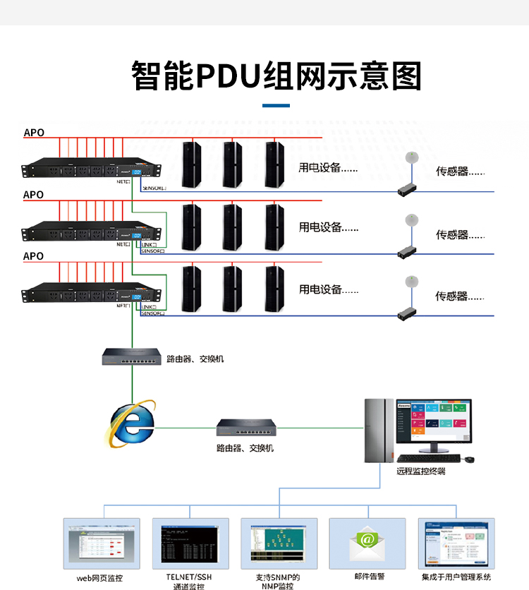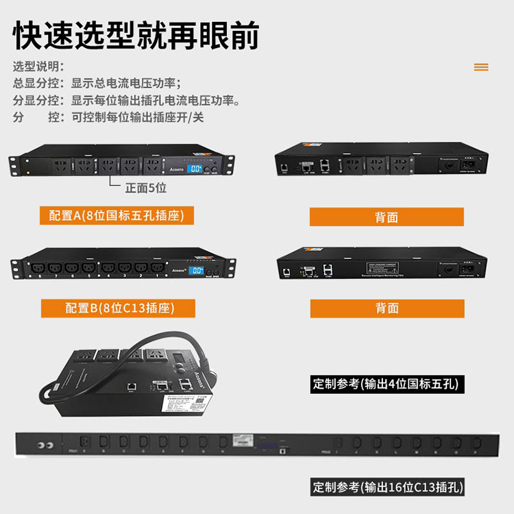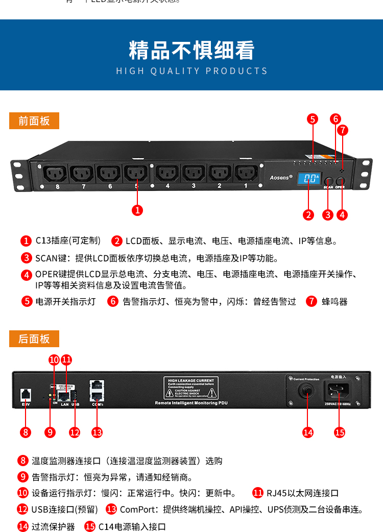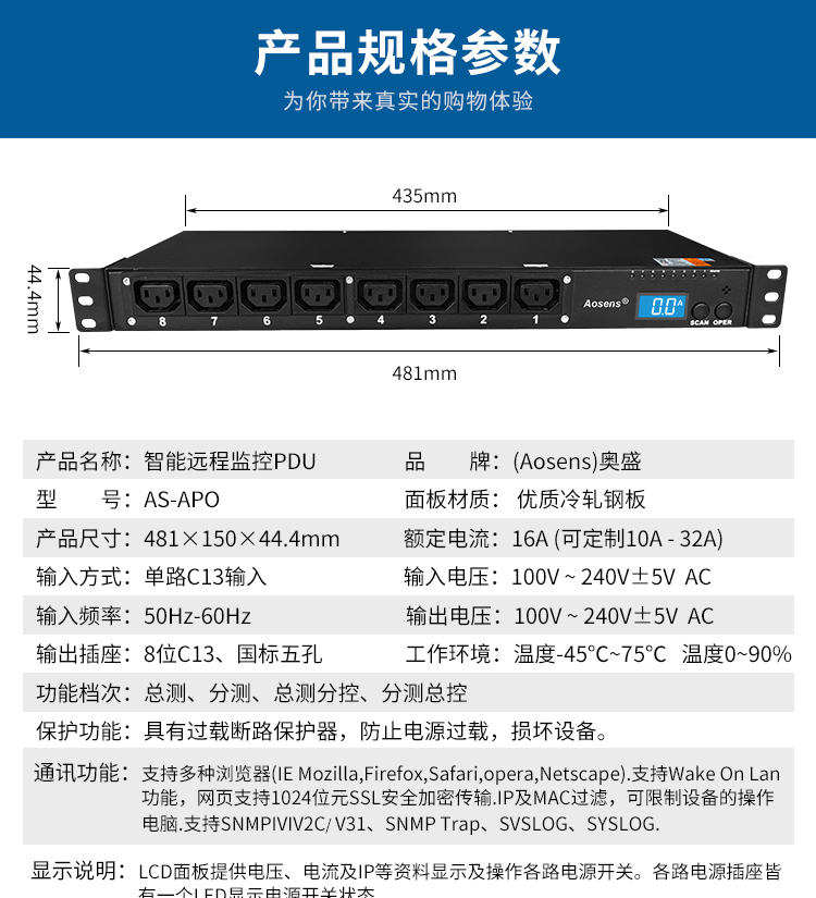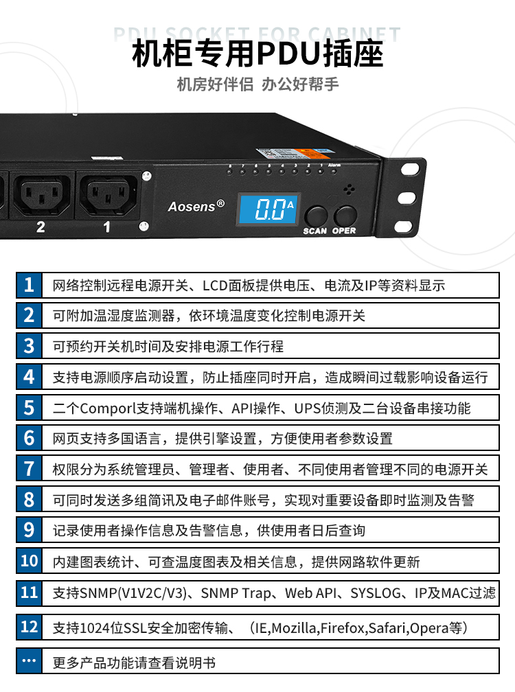 奧盛(Aosens)API3網(wǎng)絡(luò)遠(yuǎn)程監(jiān)控C13防脫PDU電源插座智能時